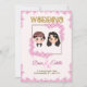 Celebrate your special day with this adorable and charming wedding invitation featuring a cute and kawaii couple surrounded by beautiful cherry blossoms. The delicate pink and white petals of the cherry blossoms symbolise love and new beginnings, making this invitation the perfect way to invite your guests to share in your joy and happiness.