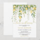 Lemon blossom bridal shower invitation designed in a fresh citrus theme with watercolor lemons, white blossoms, and soft green leaves. This elegant “Love in Bloom” design is perfect for spring or summer bridal showers, especially garden or outdoor events. Featuring romantic typography and a clean white background, it creates a light and joyful atmosphere. Fully customisable with your bride's name and event details. Ideal for rustic chic, Mediterranean, or botanical celebrations. Printed on high-quality paper with professional results. A beautiful way to honour the bride-to-be with charm and freshness.