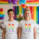 This shirt features a beautiful and elegant design to bring a cohesive and meaningful touch to your wedding celebration. The graphic depicts two women, in the form of elegant stick figures, holding hands. The figures are coloured in a beautiful rainbow, symbolising love and diversity. This shirt is a wonderful way to celebrate your love story with every detail of your special day.