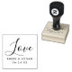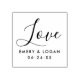 Rubber stamp features the word "Love" in hand lettered calligraphy script writing with a simple and modern custom monogram of the bride & groom's names and wedding date.