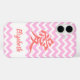This stylish phone case features the Japanese character for "Love," written in dark pink. You can easily add your own name or short message to the case in a pink script font. Open the full editor to change the chevron colour and play with different font options!