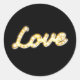 This sticker is accented with the word "LOVE" written in vintage marquee lights on a black background.