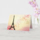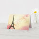 Eiffel Tower against a yellow, tan and pink background with floating hearts and "paris" in gold font. Easily add your own text to this design to customise it. Perfect for the Paris, France travellers, wedding or other special occasion.
