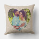 Love in Script Beige Custom Heart Shaped Photo Cushion