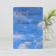 A stunning and simple wedding collection that can be used to mix and match to create your perfect event. The main image is a bright blue morning sky with wispy white clouds floating by. A bridal shower invitation that reads, "Please join us in a bridal shower in honour of NAME on DATE, LOCATION. Hosted by NAME Please RSVP by DATE.