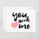 Love in Two Words You and Me. Valentines Day Holiday Postcard