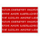 The word love in different languages. White on red. Dutch (liefde), English (love), German (liebe), Spanish (amor) Italian (amore), French (amour), Danish (kaerlighed), Swedish (karlek), Hongarian (szeretet), Albanian (dashuri)