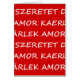 The word love in different languages. White on red. Dutch (liefde), English (love), German (liebe), Spanish (amor) Italian (amore), French (amour), Danish (kaerlighed), Swedish (karlek), Hongarian (szeretet), Albanian (dashuri)