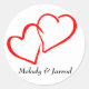 Love is in the air! These cute stickers feature two intertwined red hearts highlighted against a crisp white background. You can personalise the stickers with your name(s) or business name.