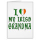 Image with heart shaped Irish Flag or flag of Ireland, reads, "I Love My Irish Grandma." Great for Mother's Day, Christmas, birthday, St. Patrick's Day or any time you want to make your Irish grandma feel special. Great for everyone to wear at Grandma's party.