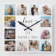 Photo clock with happy quote and 12 of your favorite pictures of family and friends. The photo template is set up for you to create your own grid style photo collage to frame the quote reads "love is a wonderful thing". The design is lettered in elegant handwritten script and skinny font typography with a black and white color palette (editable). Add your photos working clockwise from top left and your pictures will automatically be displayed in square / instagram format. A lovely unique photo gift for for couples, friends and family.
