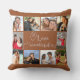 Romantic Quote and Custom Photo Pillow. The main wording is hand lettered and reads "Love is a Wonderful Thing" in playful calligraphy with love hearts. The photo template is set up for you to add your pictures, working clockwise from the top left, to form a simple grid style photo collage to frame the slogan. This design is rust brown and blush pink and more colours choices are available in my store. Alternatively, you can click "customise further" to choose your own colours or message me for assistance.