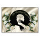 Love is All there is silhouette embrace design with black on a gold silk and white roses makes for a powerful personalised number and name cards for each quest on the table
