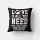 Love Is All You Need And A Dog Named - add your own pets name, easy to personalise, a dog themed throw pillow from Ricaso - designed in black and white