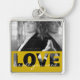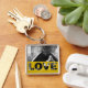 "Love is all you need" Valentine's Day themed photo key chains mustard yellow love cutouts keyring.