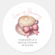 Celebrate the bride-to-be with a theme that everyone loves, featuring a coffee cup with pink coquette bow. Whether you’re hosting a cosy morning brunch or a sophisticated afternoon coffee bar, this "Love is Brewing" sticker is perfect for envelopes and favours.