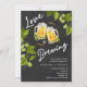 Celebrate your engagement with this Love Is Brewing brewery-themed photo invitation, featuring a black chalkboard background, hops and greenery, and golden beer details. The back includes space for your favorite photo, adding a personal touch to your fun and casual brewery engagement party. Perfect for couples planning a relaxed, modern celebration. Customize with your event details and photo, and add matching items from the suite to complete your brewery engagement party look.