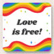 Elevate your table setting with the **"Love is Free: Rainbow Pride Coasters."** Featuring bright rainbows on the top and bottom, and the bold message "Love is Free!" in black, these durable hard plastic coasters not only protect your surfaces but also spread the message of love, equality, and pride. Perfect for adding a splash of LGBTQ+ pride to your home, they make every drink a celebration of unity and inclusivity.