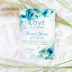 Love is in bloom blue teal green flowers bridal shower invitation instant download template.