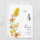 This charming table number card is the perfect way to display your table numbers. It features a stunning design where the table number is displayed in a bold, elegant script. This card is fully customisable with the table number, the bride-to-be's name, the event date, and the beautiful "Love is in Bloom" title. It's beautifully adorned with our spring wildflower artistry, creating a delightful piece of party decor.