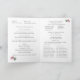 Design features your text in traditional Catholic Nuptial Mass format displayed against a white backing. The Catholic symbol IHS with a cross and palm branches is displayed on front. Front background features the image of a rose in full bloom. Heading, names of couple and name & address of church are displayed in an elegant, silver-coloured font against a white rectangular shape. Interior features your information displayed against a white background. Images of intertwined roses are displayed at corners. Room for up to seven bridesmaids and Groomsmen. Back includes customisable message of gratitude and an optional memorial for those loved ones who have passed. Also includes room for your photo. All text is customisable. Designed to coordinate with the "Love is in Bloom Wedding Suite."