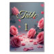 Love is in Bloom Pink Roses Wedding Elegant Table Number