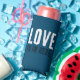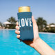 LOVE Is In Here. Funny Quote. Blue and White. Seltzer Can Cooler. Add your favourite funny quote. Enjoy!