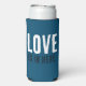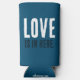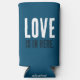 LOVE Is In Here. Funny Quote. Blue and White. Seltzer Can Cooler