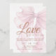 love is in the air invitation, watercolor valentines invite, romantic february event, soft blush party invitation, pink bow design, valentines bridal shower, aesthetic valentines invitations.