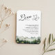 An elegant Wedding Invitation magnet with watercolor mountains and pine trees that you can customise with your details.