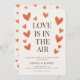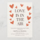 Romantic hearts engagement party invitation with a Love Is in the Air theme. Designed to celebrate the newly engaged couple with a warm, elegant, and joyful look. Ideal for engagement parties, pre wedding celebrations, and couple gatherings. Editable text. Print-ready layout.