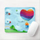 Fantasy landscape with balloon heart shaped and cat, valentine card.