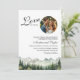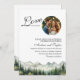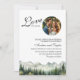 An elegant Wedding Invitation with watercolor mountains and pine trees that you can customise with your details.