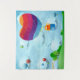 Fantasy landscape with balloon heart shaped and cat, valentine card.