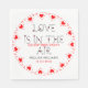 Cute red hearts circle with typography design-Love is in the air, customisable Valentines party paper napkin template.