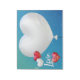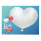 Happy Valentine's Day "Love is in the air" red and white balloons lovely and modern illustration. Text written in modern typography script letters framed with realistic 3D balloons in heart shapes on a blue sky background.