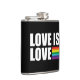 The flask itself is fine. It’s a cheap flask, obviously bought in bulk, however am prepared to overlook that. Given that it is a personalized item, I would have liked to have seen gift boxing instead of the generic packaging. Terrible printing, and/or quality. It’s a cheap, tacky vinyl. It is not cut straight and is also applied in a way that it is overhanging the bottom, causing the glue to catch on items and it will eventually roll and tear, damaging the wrap.