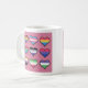 Mug inspired by Lin-Manuel Miranda's speech at the 2016 Tony Awards. Features nine hearts decorated with Pride flags.