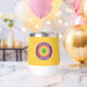 Celebrate Pride with this cute-as-a-button design! Featuring bright colours of the rainbow pride flag with the words "Love is Love" in circles to symbolise eternity.