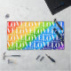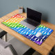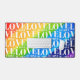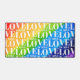 This colourful desk mat is decorated with a watercolor rainbow background and a Love is Love pattern in stylish white typography.