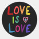 LOVE IS LOVE Rainbow Handlettering Set of Classic Round Sticker