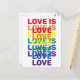 Love is Love. Pride lgbt lgbtq queer gay rainbow colours typography white background modern cool postcard.