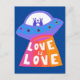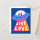 LOVE IS LOVE Spaceship Aliens Colourful Rainbow UF Postcard