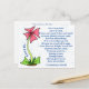 This LOVE IS postcard features I Corinthians 13:4-8a written on the front, which says "Love is patient, Love is kind, It does not envy, it does not boast, It is not proud, it is not rude, It is not self-seeking, It is not easily angered, It keeps no record of wrongs. Love does not delight in evil but rejoices with the truth. It always protects, always trusts, always hopes, always perseveres. Love never fails."  The verse is set against the backdrop of a Custom designed pink flower with wisps of blue clouds in the background. This is a great way to express your faith and encourage others.  There is plenty of space on the back for your custom note.