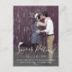 Postponed Announcement with hand lettered white script overlay design "LOVE IS PATIENT" photo wedding announcement card vertical. Send out your change the date cards as newly engaged couple to your friends and family using this beautifully, simple save the date postcard with a white handwriting script text overlay design. Design by Elke Clarke© . Replace the sample photo with your own. Add your personal information on the front and on the back.