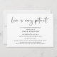 Minimal modern black and white wedding postponement and change of plans announcement. "love is very patient" is written in a chic stylish script and you can easily personalise whether the wedding date has been postponed or any other details have been changed.