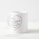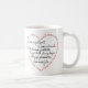 This attractive mug features a short version of 1 Corinthians 13:4 "Love is patient, Love is kind...". This unique mug features the words of the bible verse in a heart shape in addition to the words inside the heart.