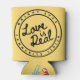 Can cooler featuring the Love is Real circle logo