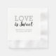 Love Is Sweet Black Silver Wedding Engagement Cocktail Napkins. Can be personalised with the bride and groom's name and wedding date! Available in a variety of colours