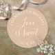 Tan wedding favor love is sweet classic round sticker. Designed by Thisisnotme©